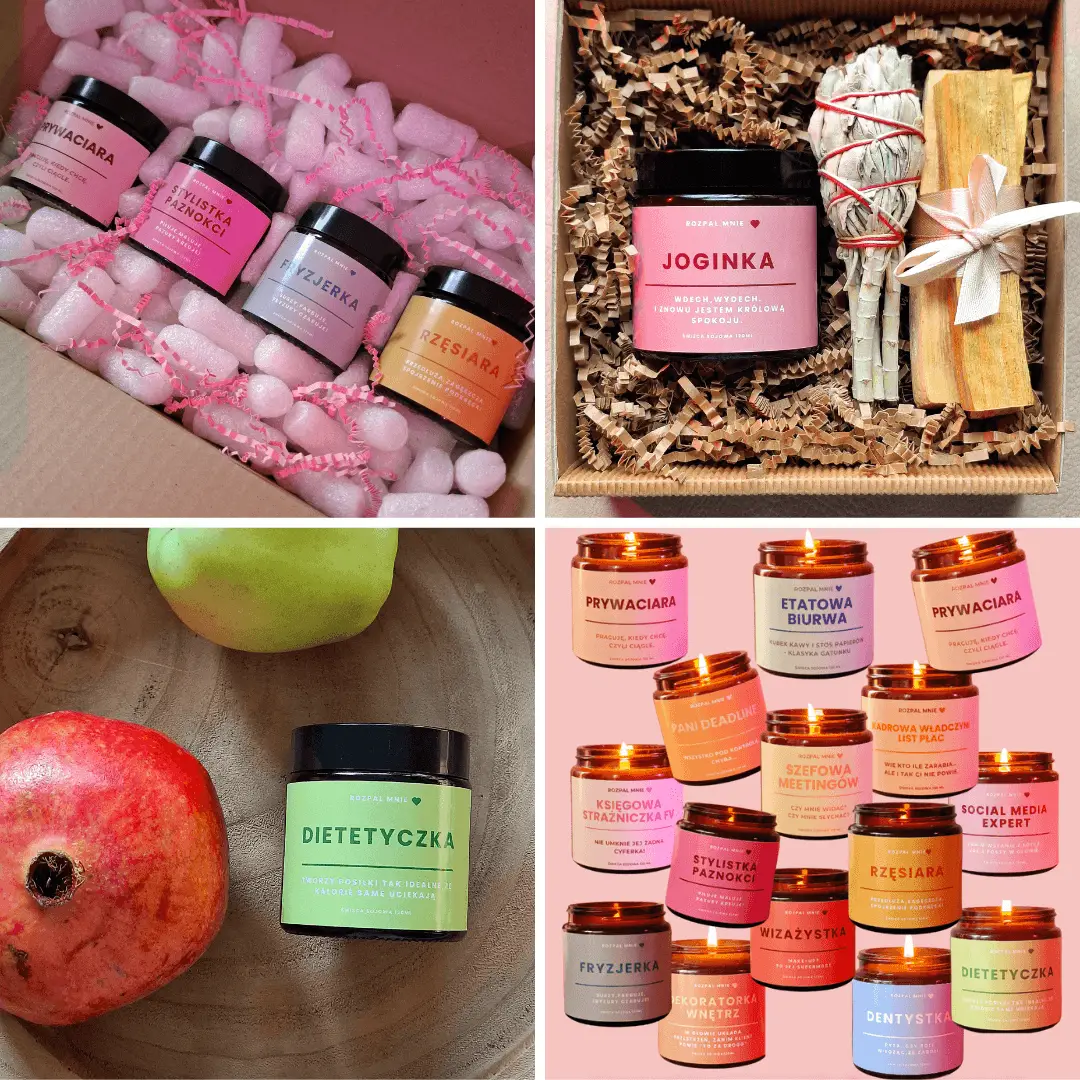 Świece sojowe z napisami to propozycja dla osób, które chcą podarować coś dopasowanego i przemyślanego. Taki prezent nie jest przypadkowy - pokazuje, że znasz osobę, którą obdarowujesz, jej styl życia, pracę lub pasję. Dlatego właśnie świeca sojowa na prezent dla kobiety staje się wyborem, który zostaje zapamiętany i wywołuje emocje. Każda świeca z wosku sojowego to połączenie zapachu, estetyki i przekazu - dlatego tak dobrze wpisuje się w codzienność kobiet.
