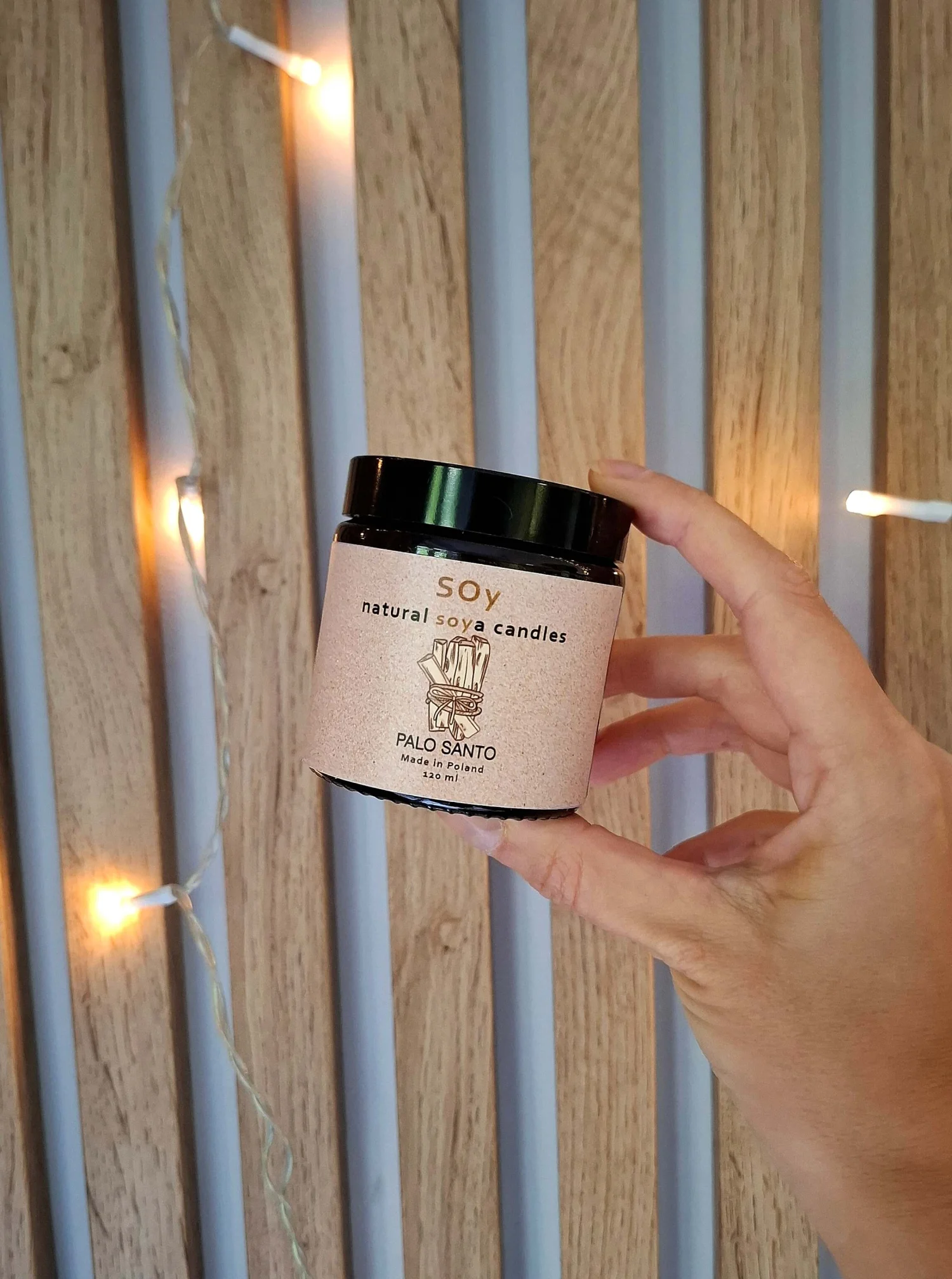 Produkt: Świeca sojowa Palo Santo, pojemność 120ml (90 gramy)