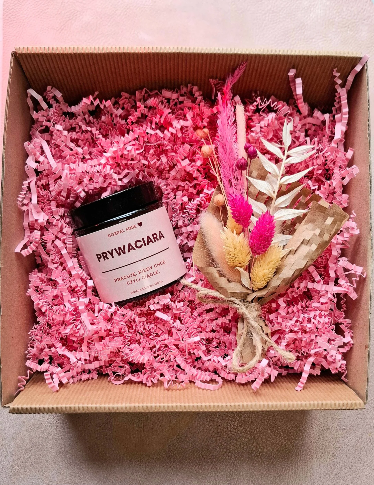 Świeca sojowa Prywaciara to idelna świeczka zapachowa na prezent dla przedsiębiorczej kobiety - z nutą żartu i dużą dawką pozytywnej energii.