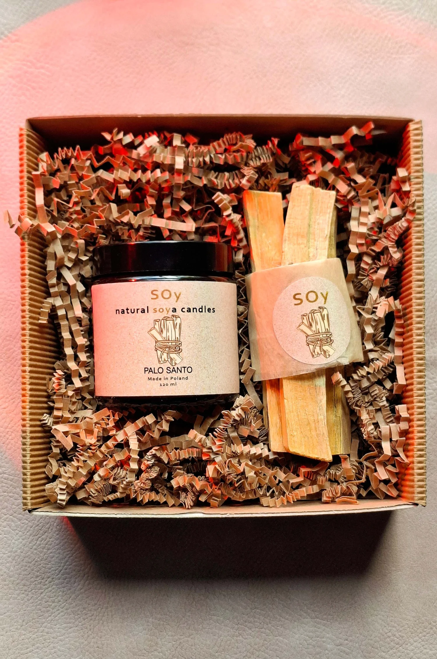 Jeśli szukasz gotowego prezentu ze świecą palo santo - zobacz ten zestaw https://soy.com.pl/oferta/zestaw-prezentowy-palo-santo-swieca-sojowa-i-drewienka-palo-santo.html