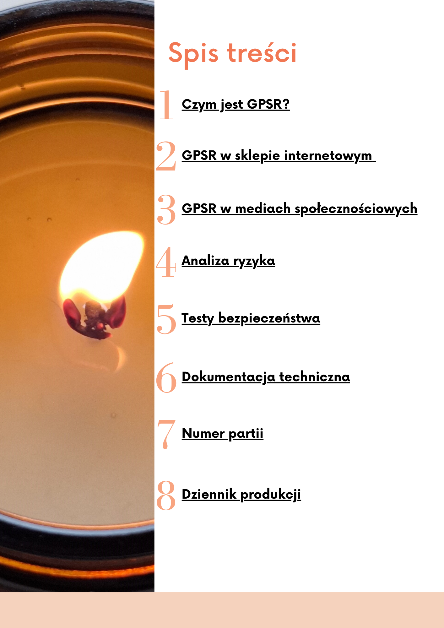 Otrzymasz też gotowy plik PDF z podsumowaniem obowiązków GPSR, który możesz wykorzystać w Excelu, uzupełniać o wyniki testów, dokumentację techniczną, analizę ryzyka dla swoich świec.