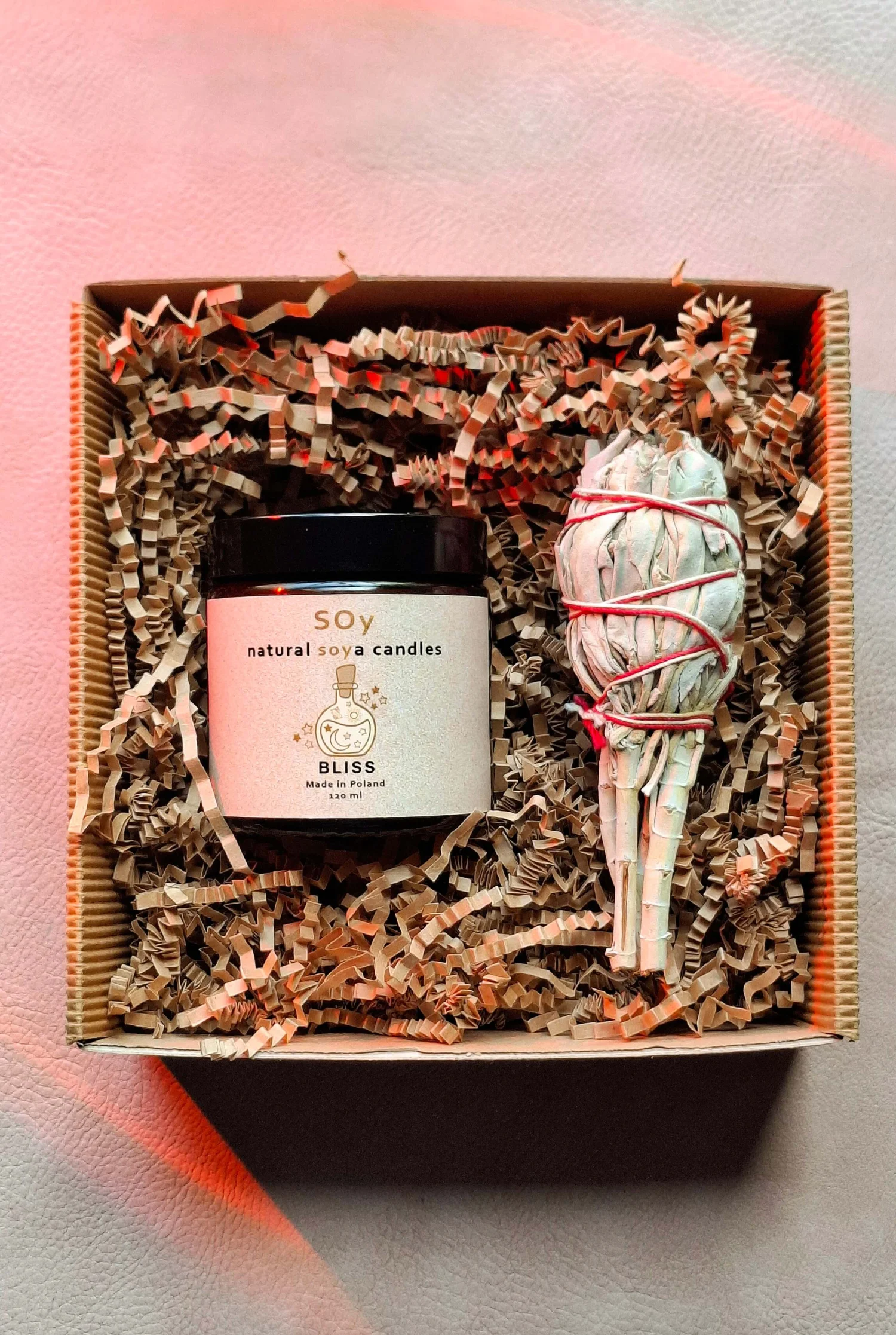 Szukasz świecy, która wprowadzi do Twojego domu spokój, równowagę i przyjemny aromat natury? Świeca sojowa Bliss to ręcznie robiona świeca zapachowa stworzona z naturalnego wosku sojowego, wolnego od parafiny i toksyn. Jej zapach to harmonijne połączenie białej szałwii, drzewa sandałowego, jaśminu i pomarańczy, które pomagają się zrelaksować, oczyścić przestrzeń i wypełnić ją pozytywną energią.