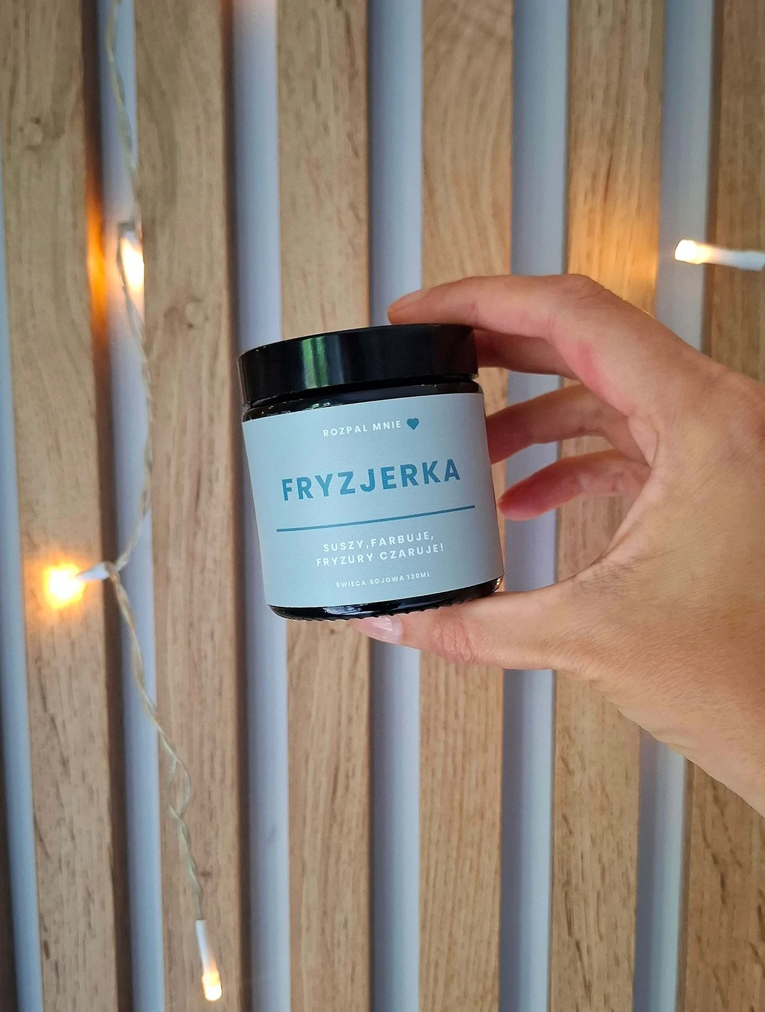 Produkt: Świeca sojowa Fryzjerka,pojemność 120ml(93 gramy).