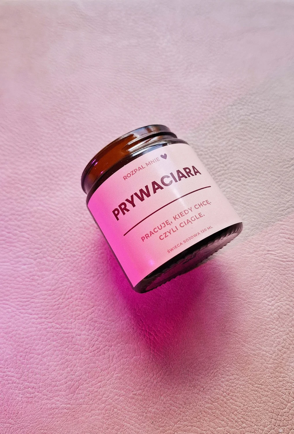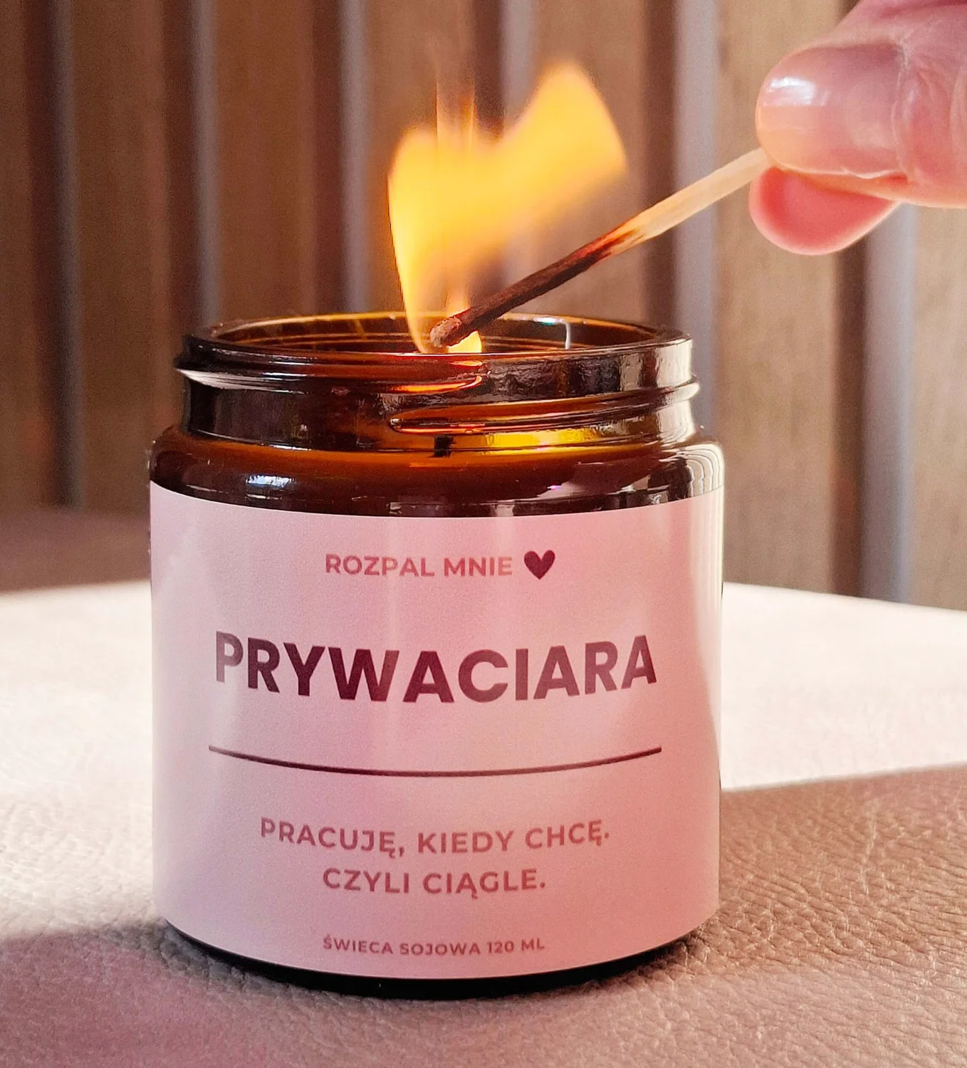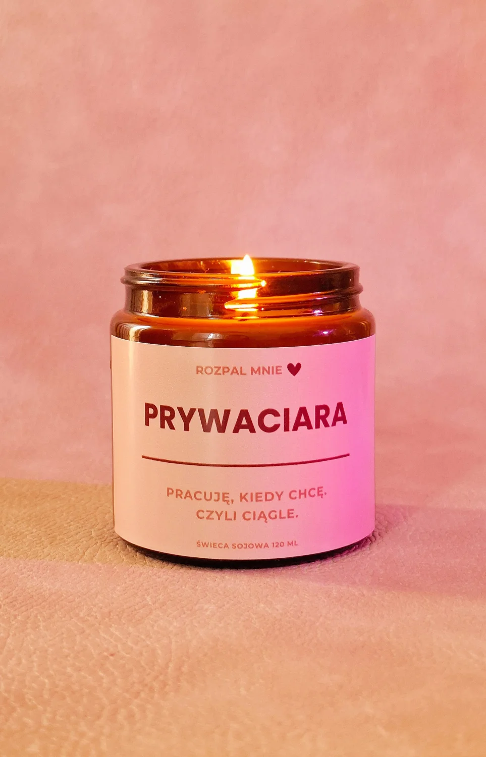 Świeca sojowa Prywaciara to idealna świeca zapachowa na prezent dla kobiety z dużą dawką pozytywnej energii.